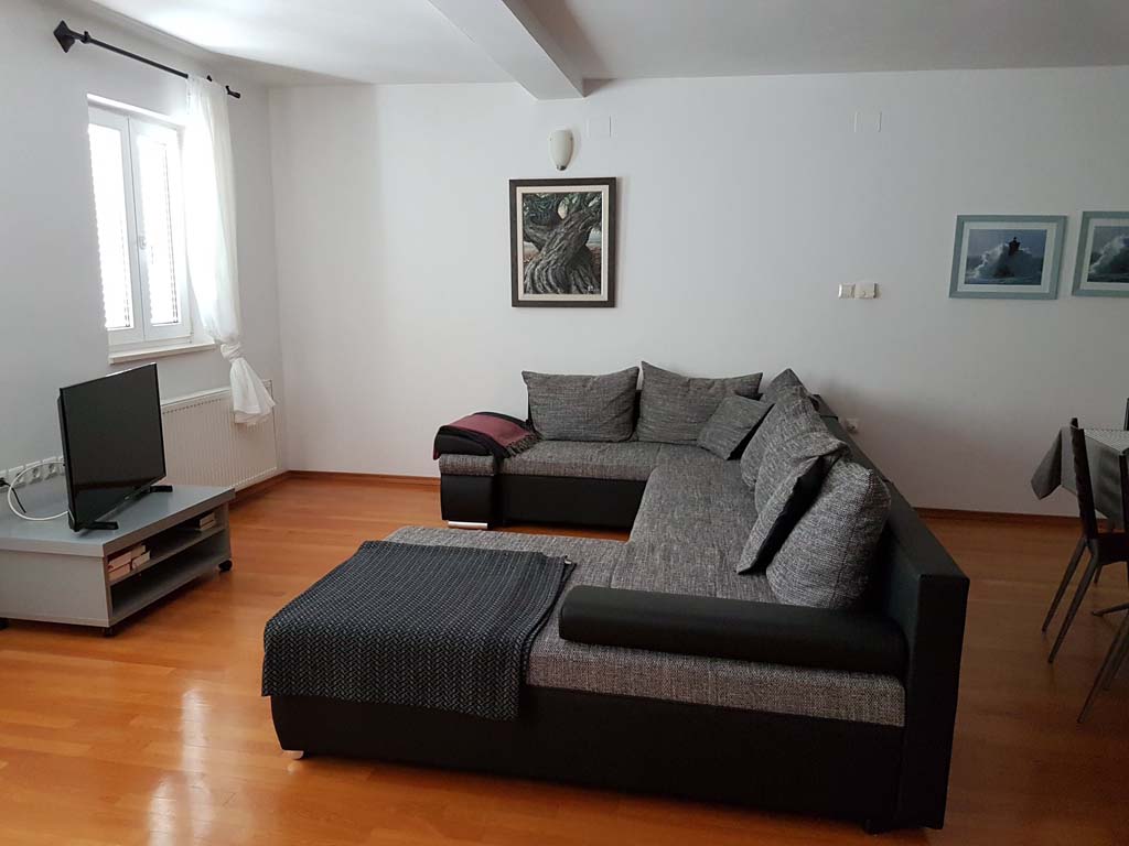 Apartment 2 is located on the second floor of the house and its area is 148 square meters. It consists of one room and a living room, so due to its surface area and number of rooms, it is intended for a stay of 4+2 people. If necessary, an extra bed is also available.